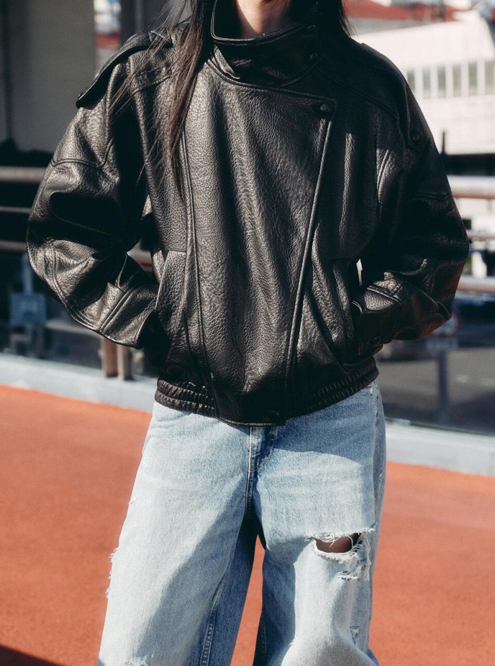 Abrigo de piel para mujer con estampado de lichi, corte holgado y cuello alto